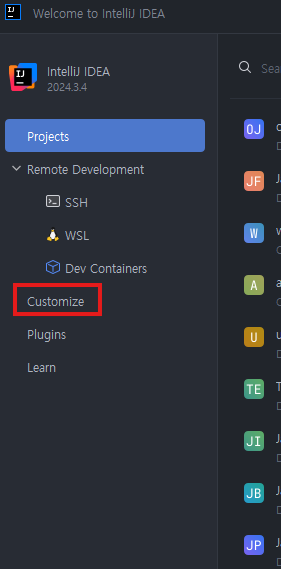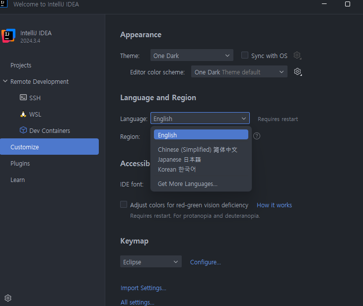 메인창뜨면 Customize 선택 후 랭기지 변경하면 끝