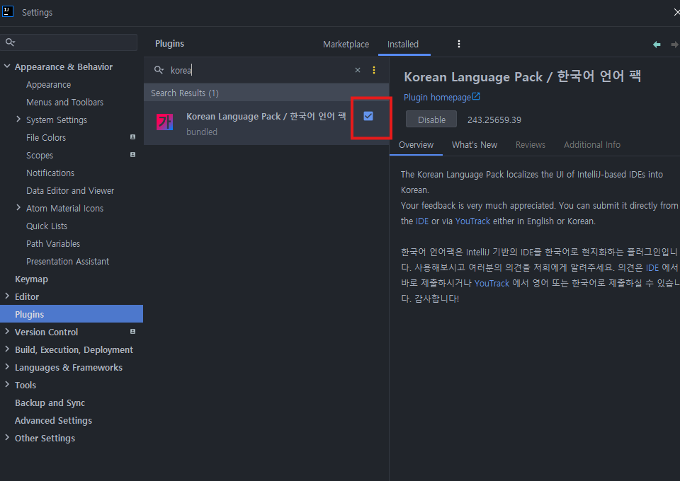 플러그인 체크확인